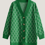 Casual Versatile V-Neck Long-Sleeve Argyle Knitted Cardigan