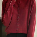 Casual Minimalist Solid-Color Half-High Neck Pullover Long-Sleeve Knitted Cardigan
