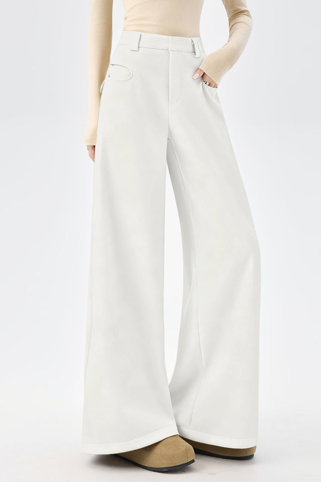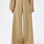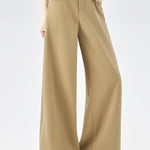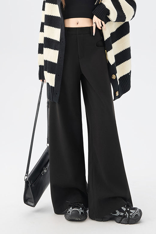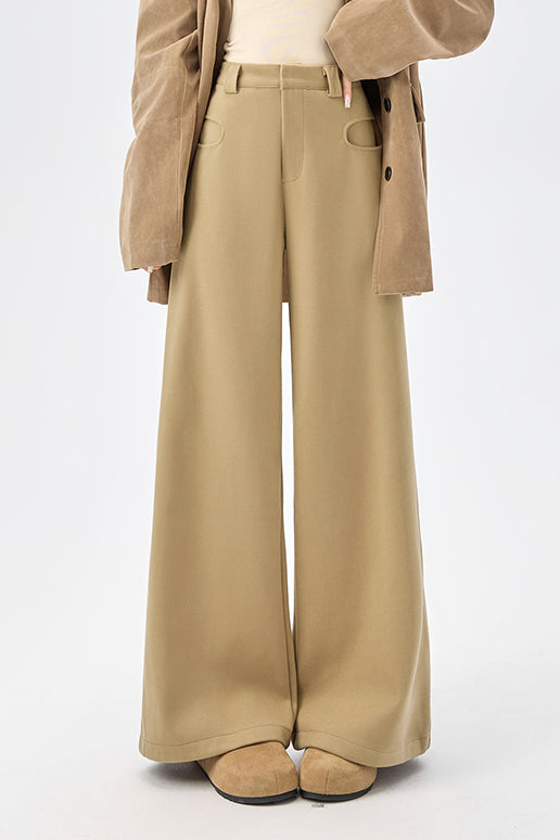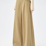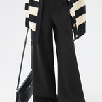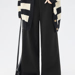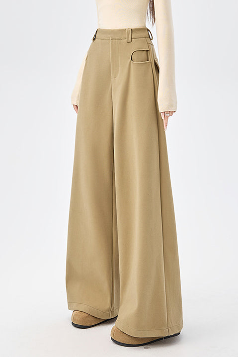 Pants,front center with openable zipper and buckles,back half of waist with elastic design,front center with horizontal visual dividing line design,side pockets on both sides,back center with decorative patch pockets and pocket loops |