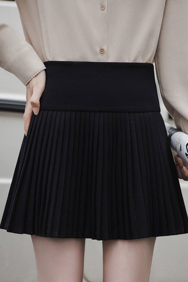 Pleated mini skirt,high-waist a-line fit,invisible zipper on the side of the waist,fine pleats for unique style,built-in safety shorts |