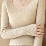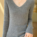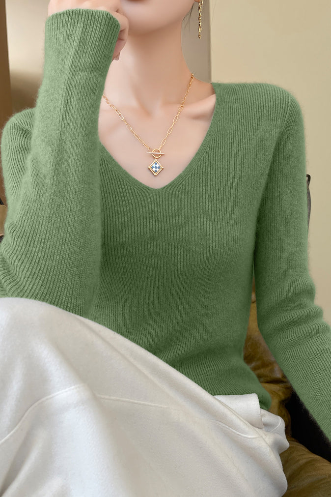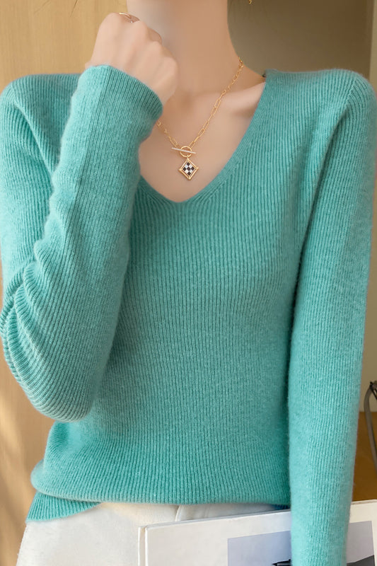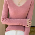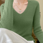 Casual Minimalist V-Neck Long-Sleeve Ribbed Texture Knitted Top
