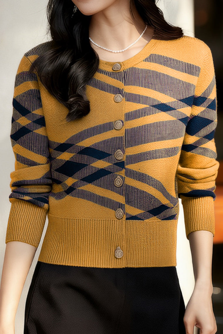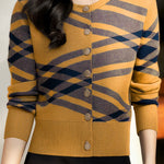 Casual Versatile Color-Block Geometric Striped Cardigan