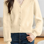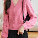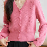 Casual Temperament V-Neck Hollow-Out Short Knitted Cardigan
