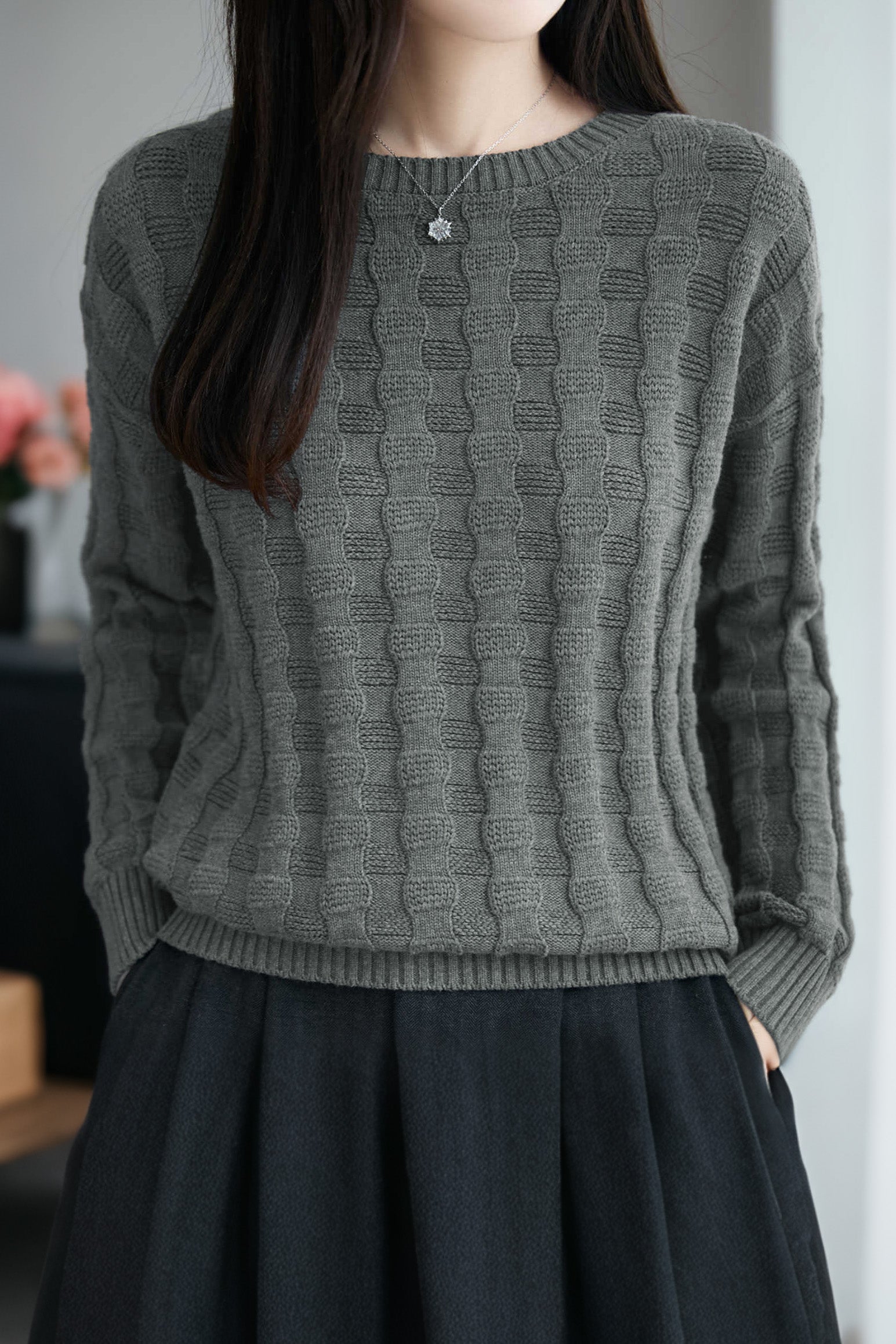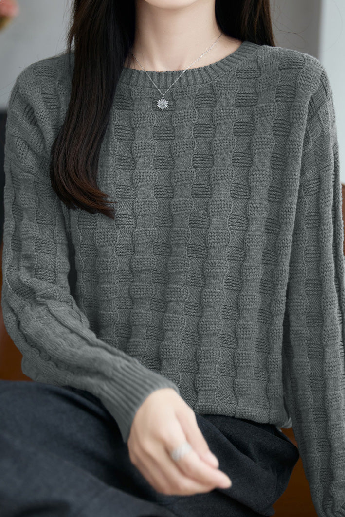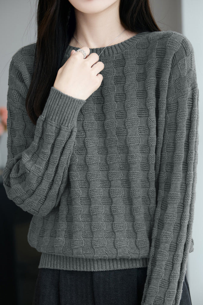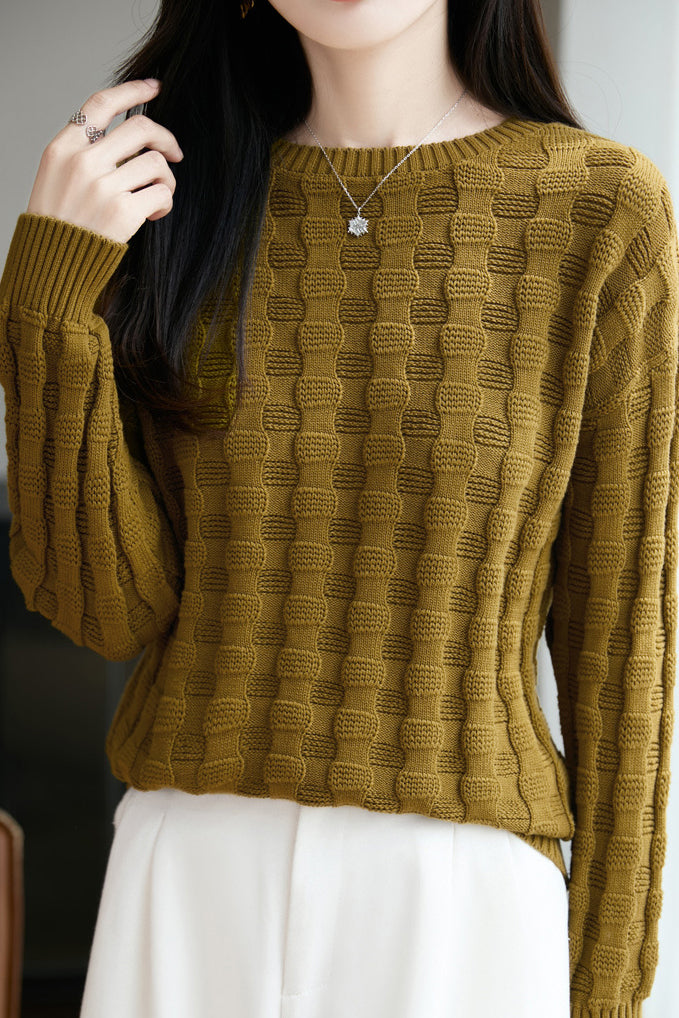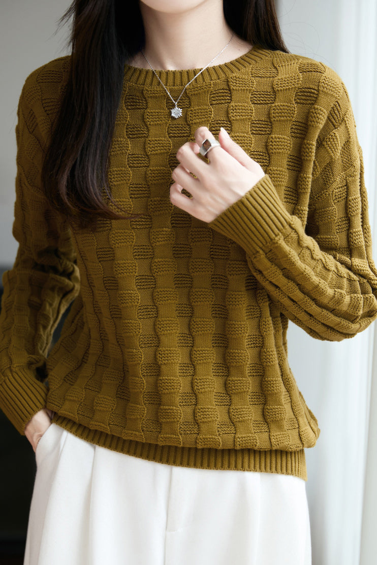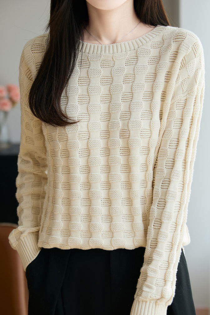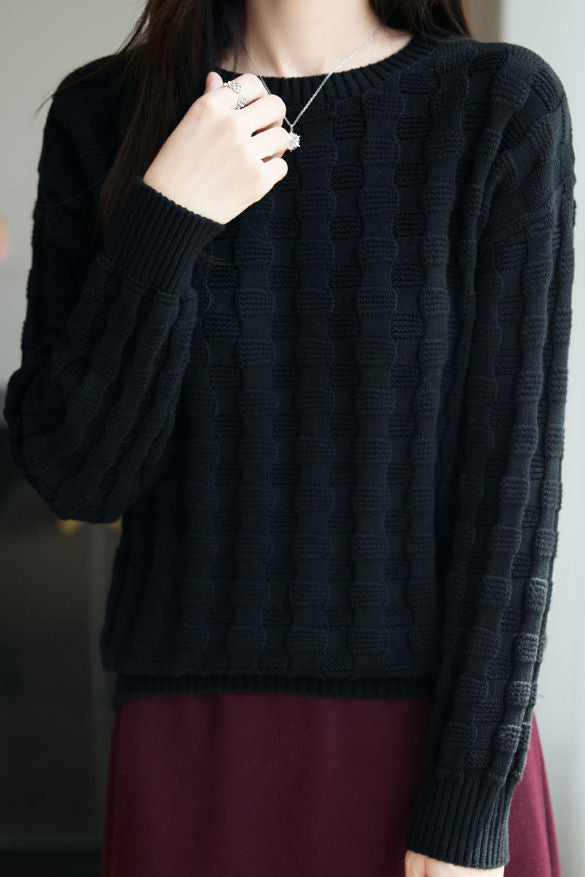Casual Minimalist Pullover Crew Neck Jacquard Knitted Top