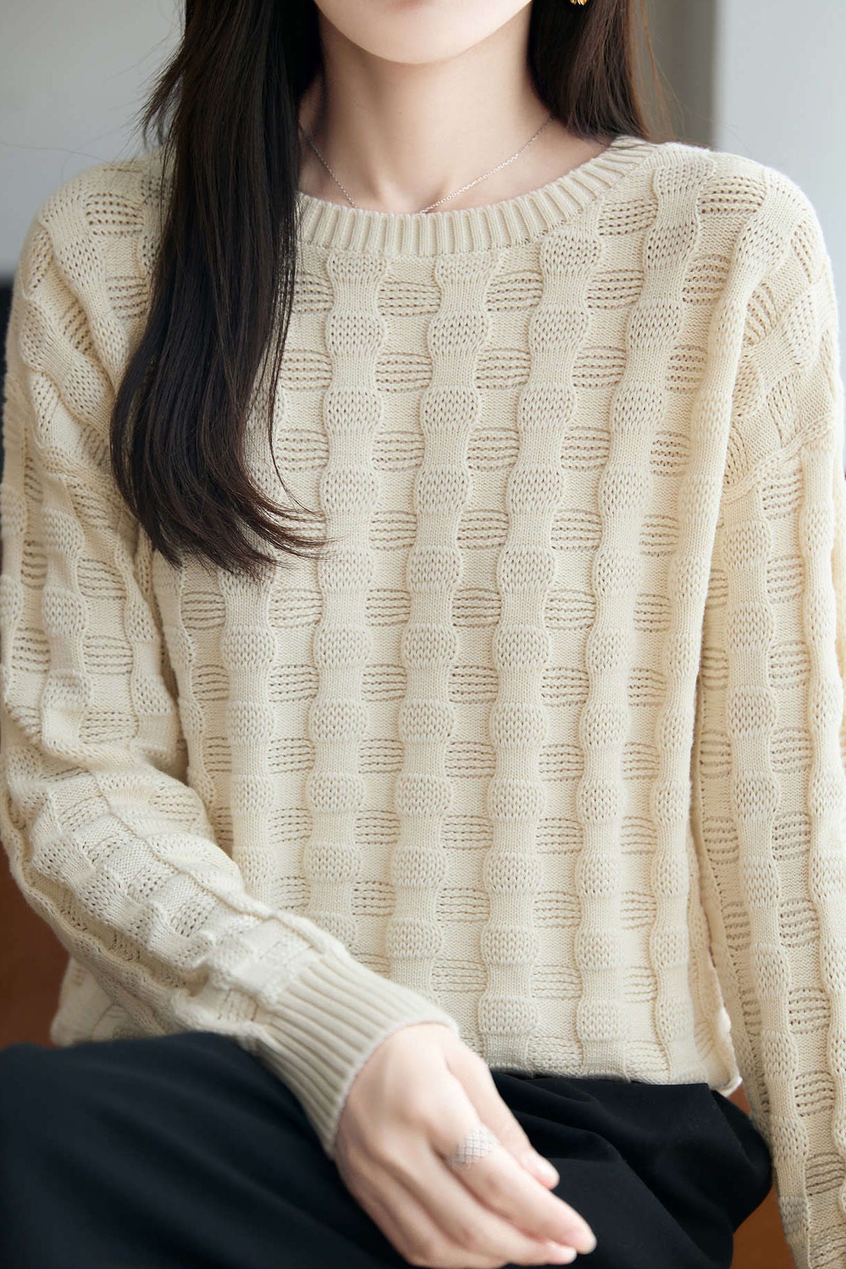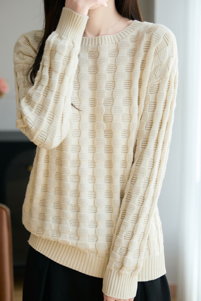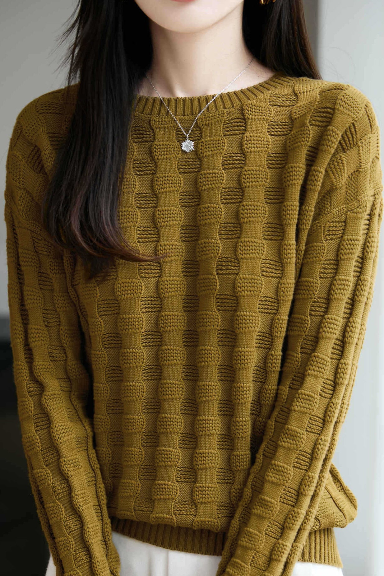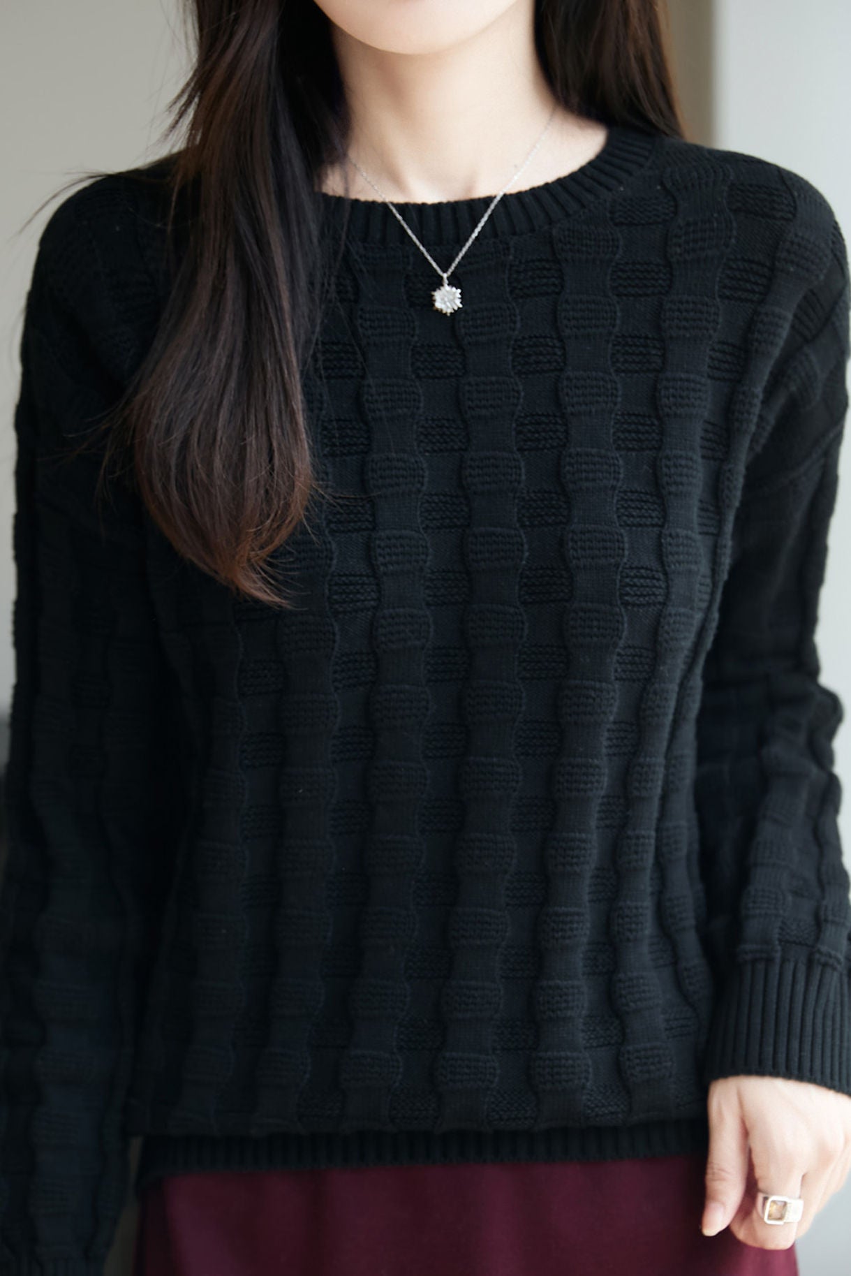 Casual Minimalist Pullover Crew Neck Jacquard Knitted Top