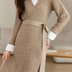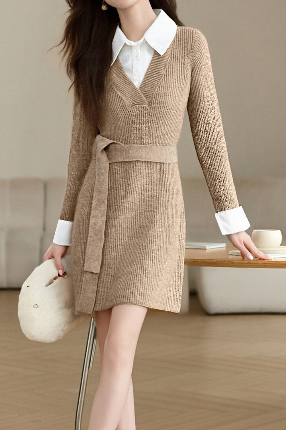 Casual Temperament Shirt Collar Paneled Fake Two-Piece Knitted Dress
