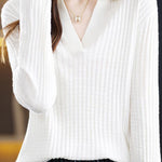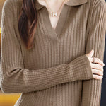 Casual Solid-Color Buttonless Shirt Collar Plaid Knitted Top