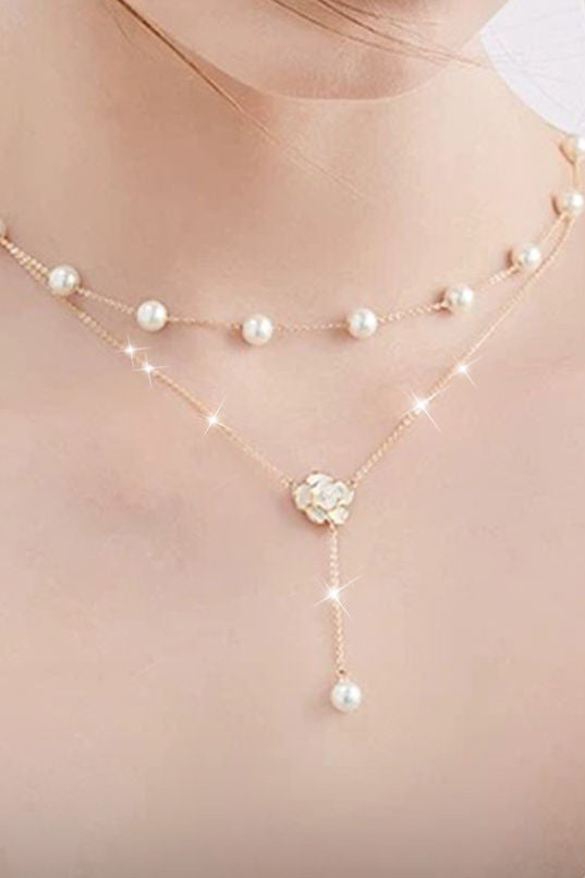 Elegant Temperament Camellia Double-Layer Pearl Necklace