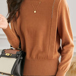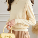 Casual Temperament Half-High Neck High-Waist Paneled Knitted Top