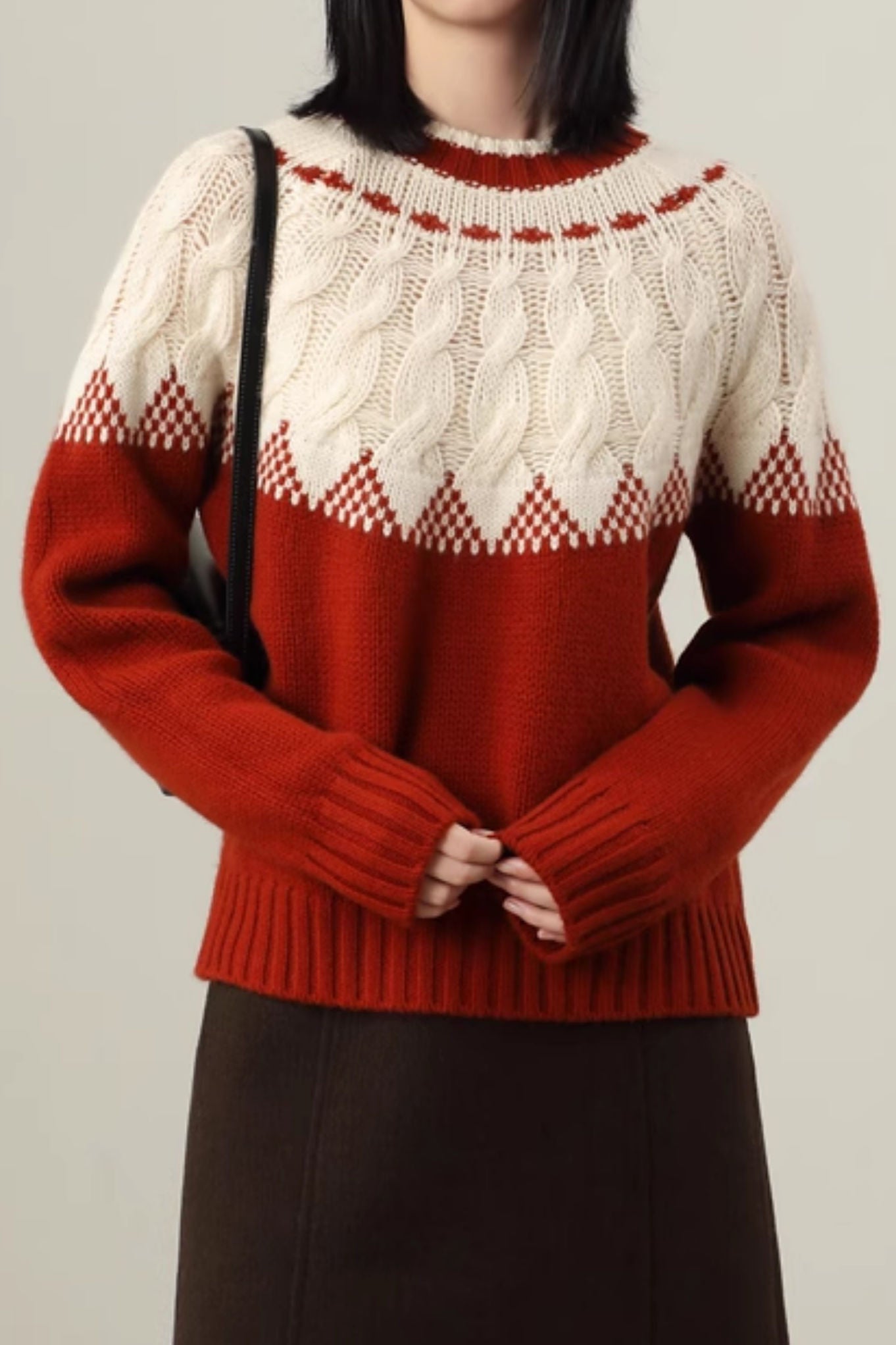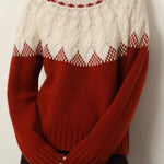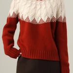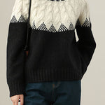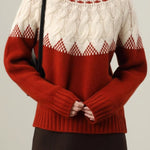 Casual Versatile Festival Color-Block Chunky Cable-Knit Sweater