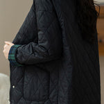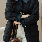 Casual Versatile Color-Block Patchwork Argyle Cotton-Padded Coat