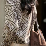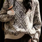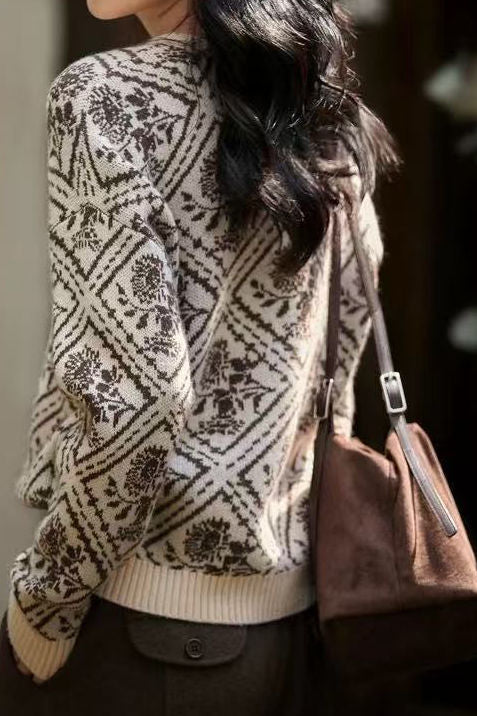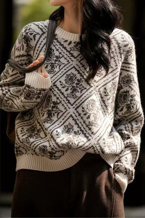 Casual Versatile Crew Neck Pullover Long-Sleeve Jacquard Knitted Top
