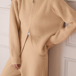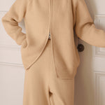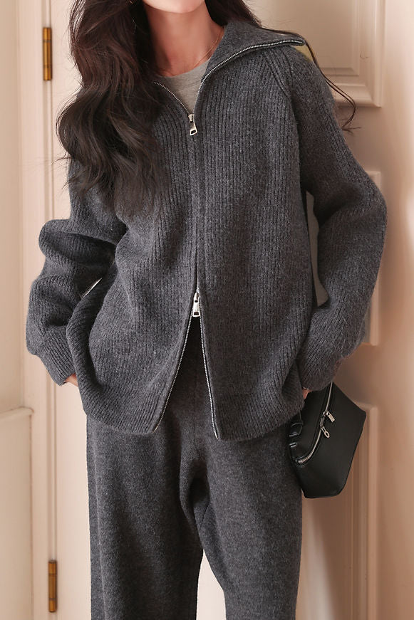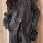Casual Versatile Solid-Color Double-Zip Cardigan & Pants Two-Piece Set