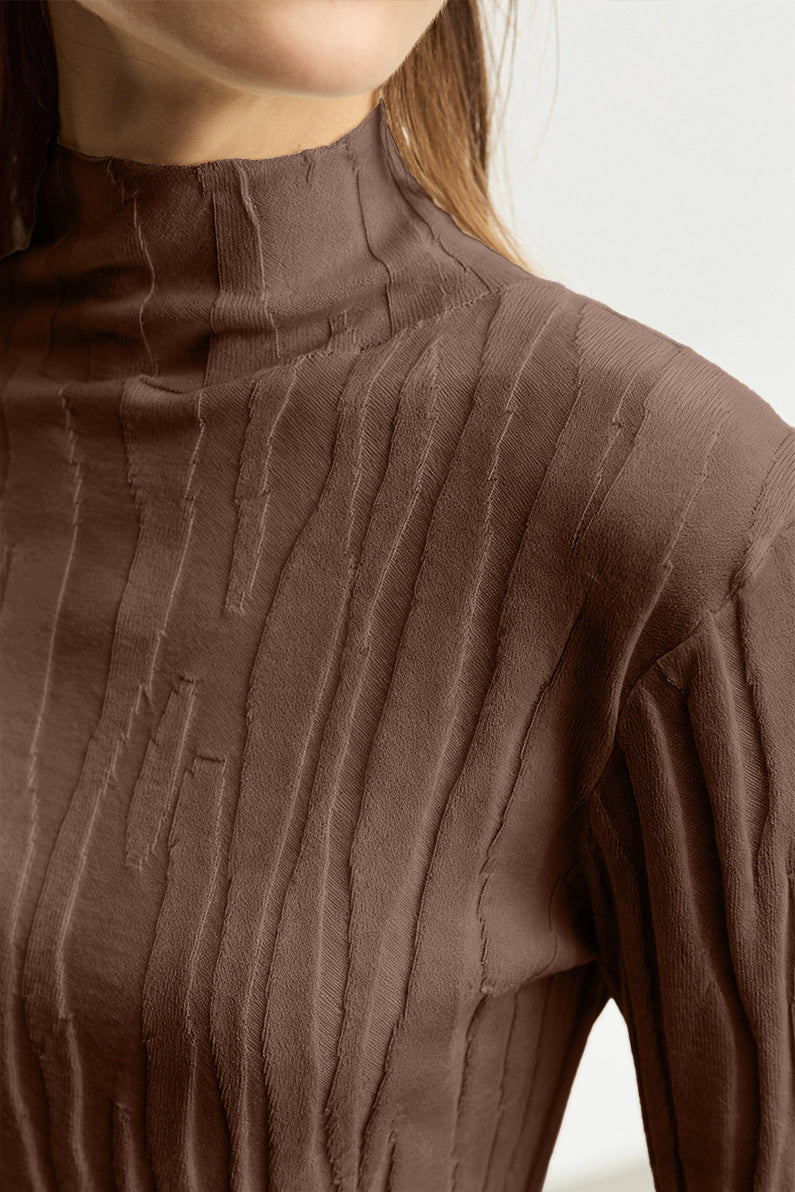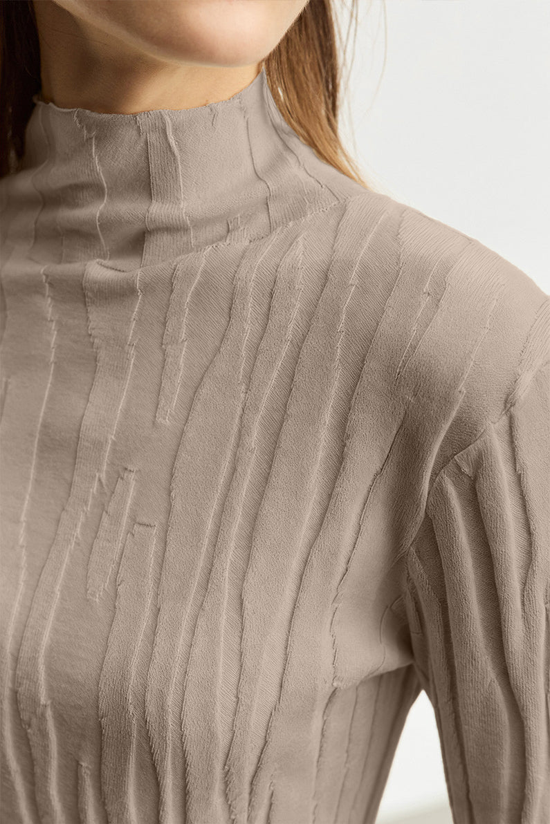 Knitted top, half-high neck design, body with vertical knitted texture for a neat look, slim fit that hugs the body, soft and delicate fabric |