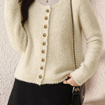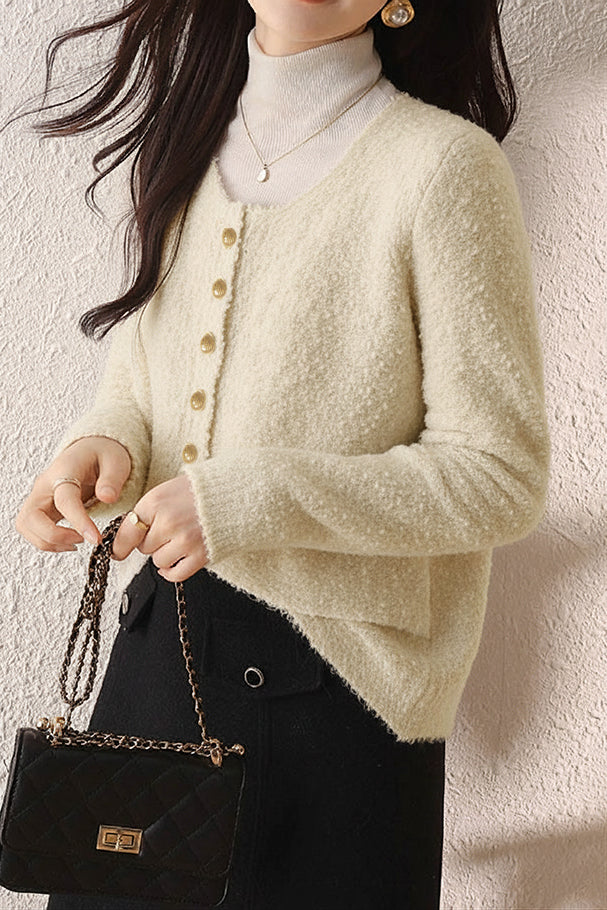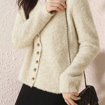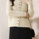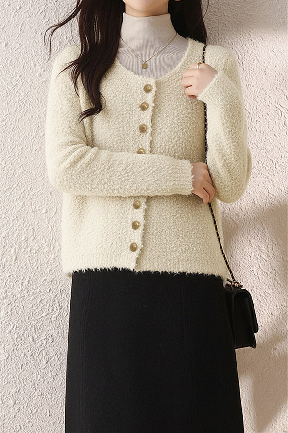Cardigan, open-front design, single-breasted button closure for simple neatness, fluffy and soft fabric, loose and comfortable fit |