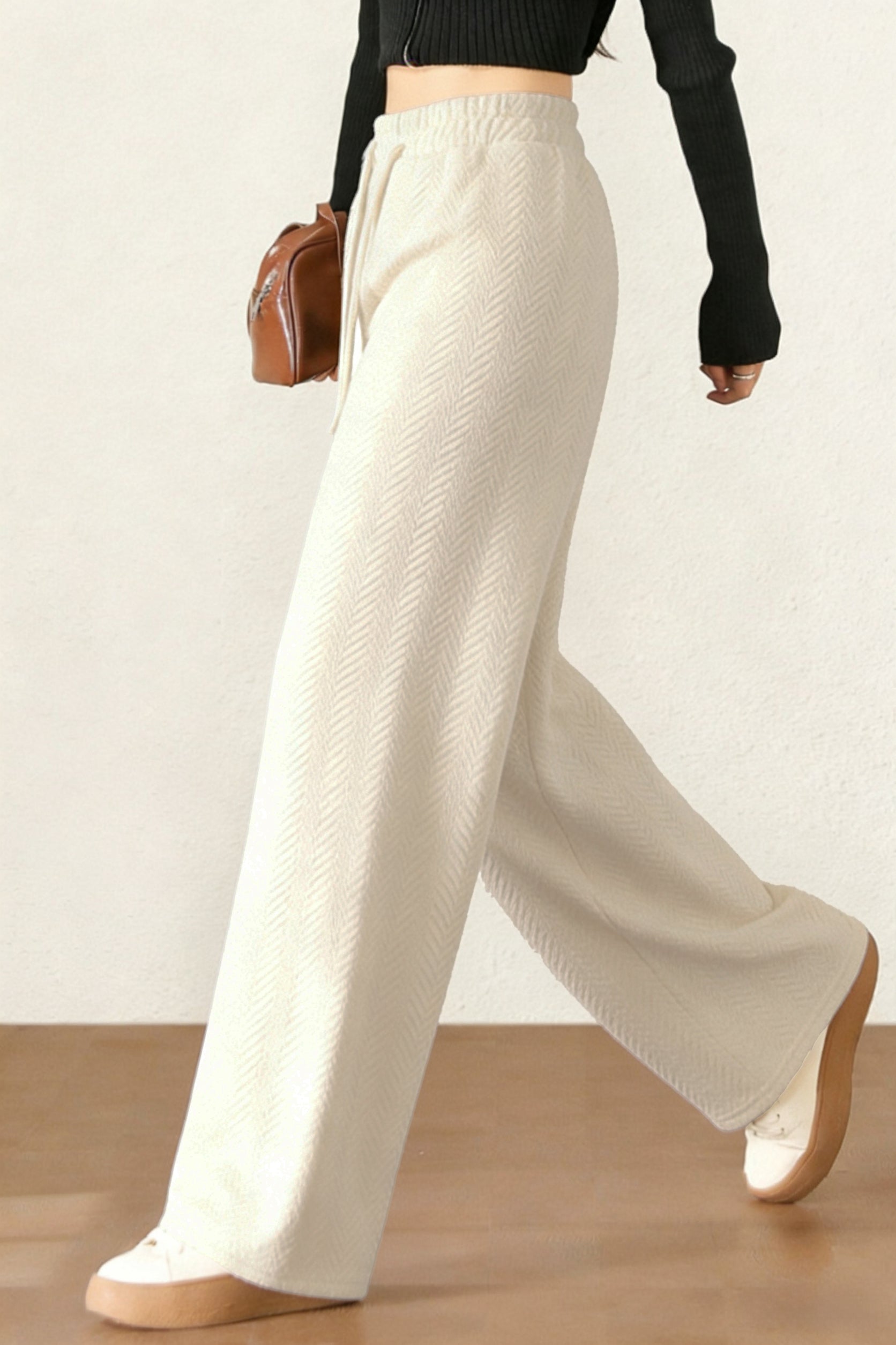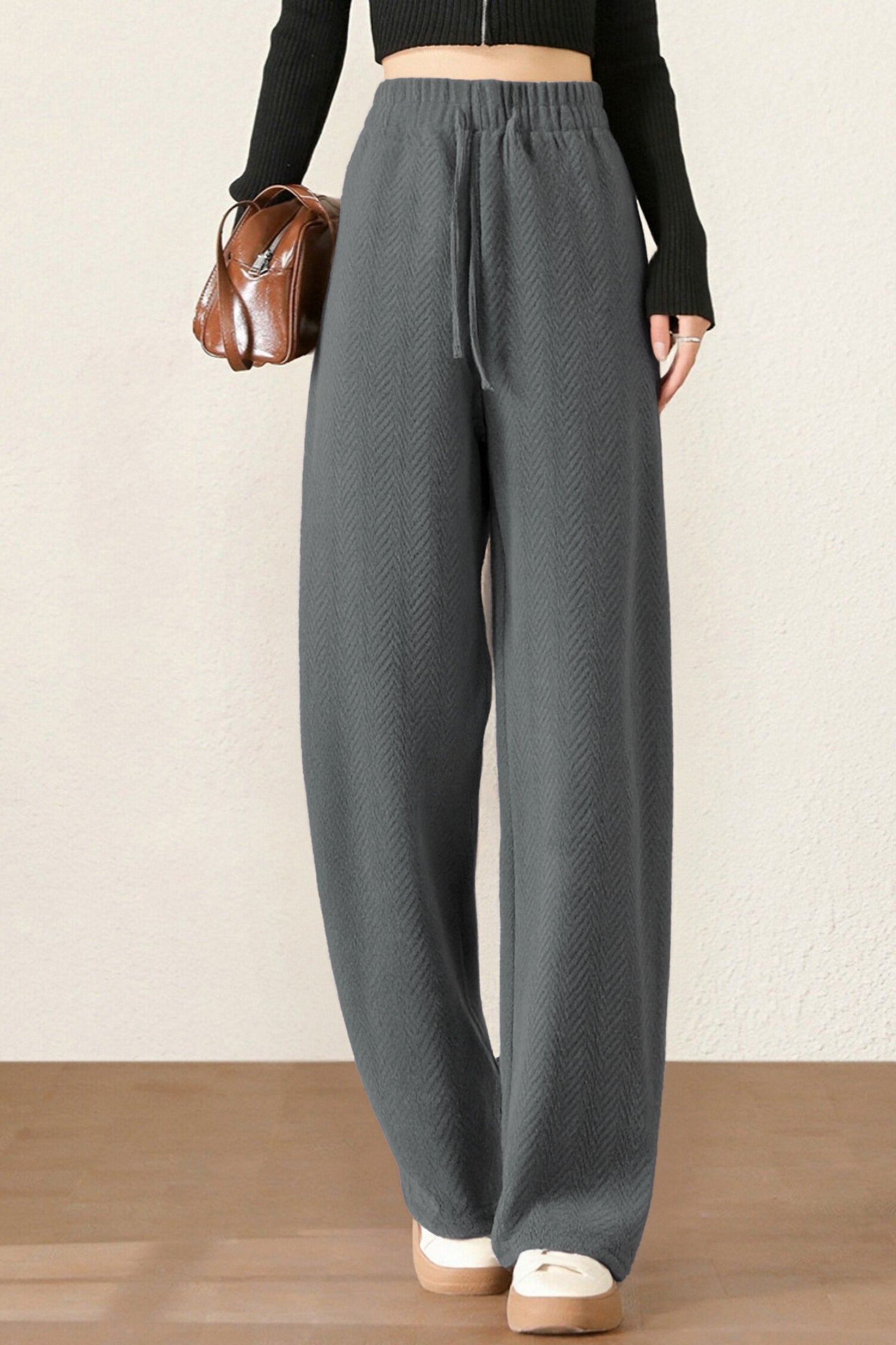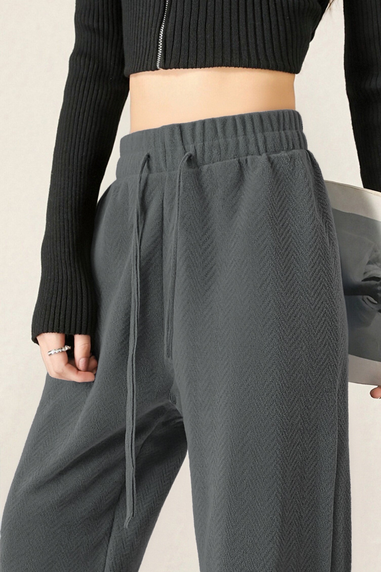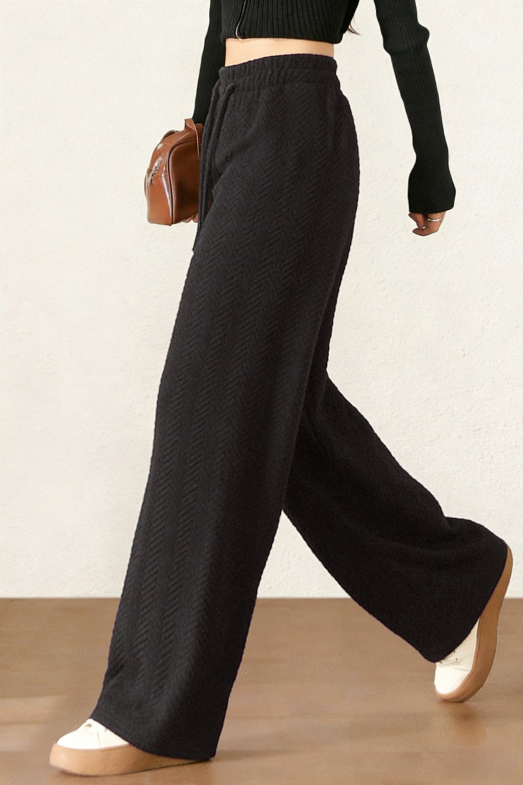 Casual Versatile Homewear Solid-Color Arrow Pattern Fleece Wide-Leg Pants