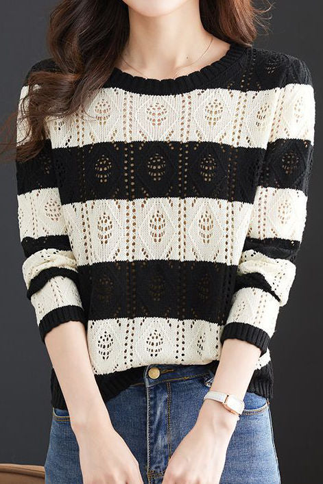 Casual Beaded Waist-Cinched Lace Patchwork Knitted Top