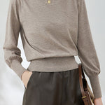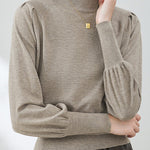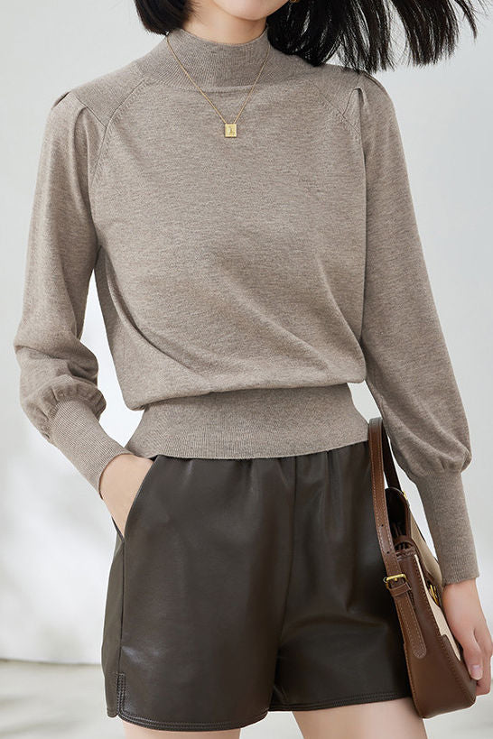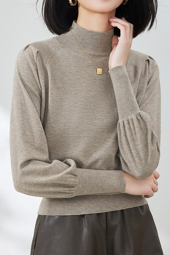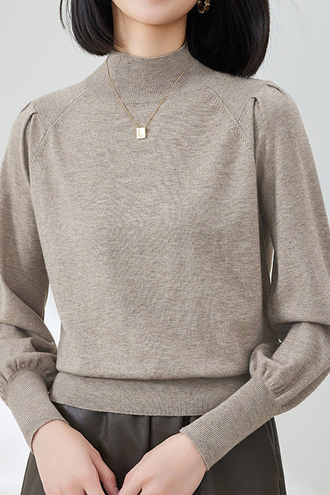 Casual Lantern Sleeve Half-High Neck Loose Knitted Top