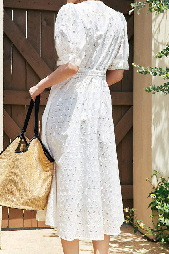 Elegant Hollow-Work Embroidered Dress