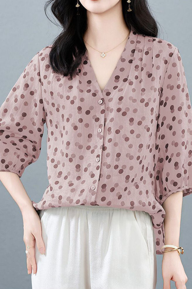 Casual Polka Dot V-Neck Versatile Shirt