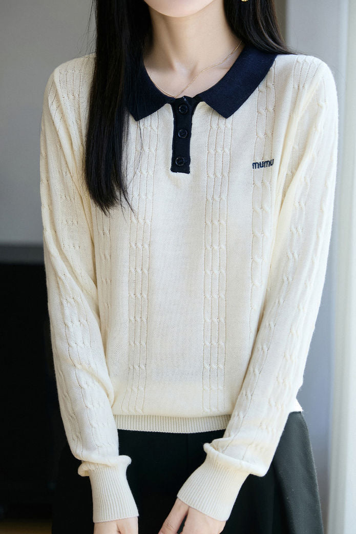 Casual Polo Collar Cable-Knit Sweater