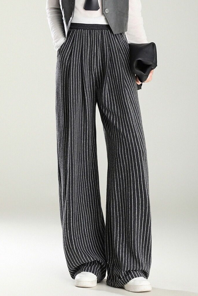 Casual Color-Block Striped Pleated Wide-Leg Pants