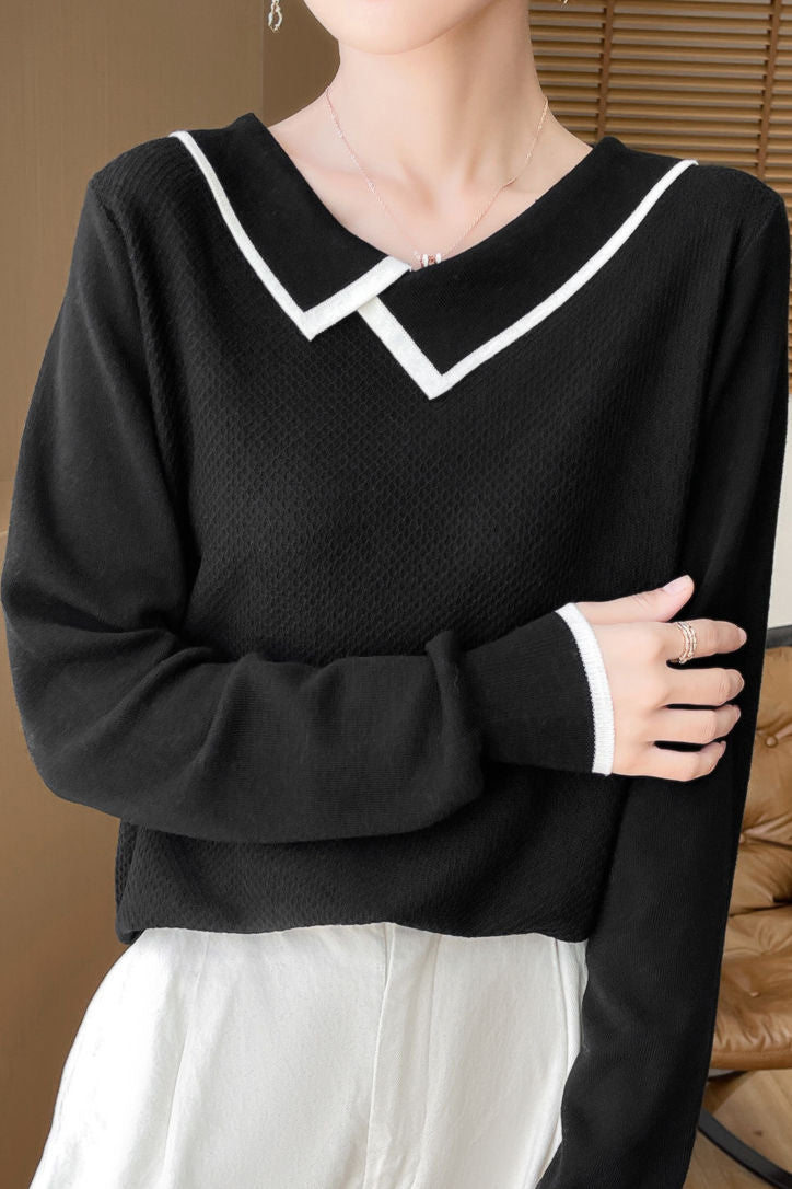 Casual Asymmetric Color-Block Lapel Knitted Top