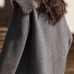 Casual Versatile Solid Color Coat with Large Fur Collar