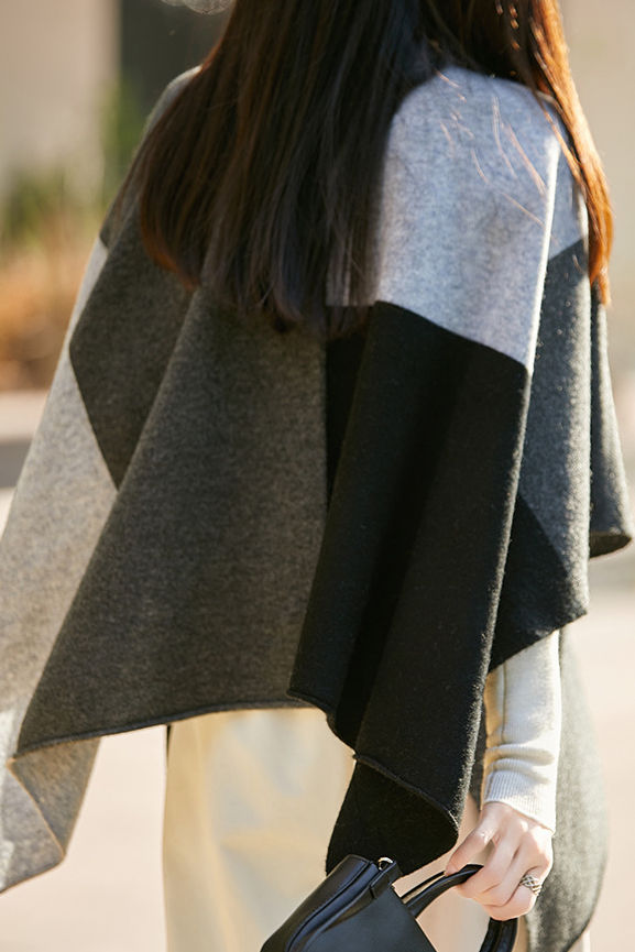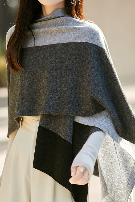 Casual Wool Versatile Color-Block Shawl