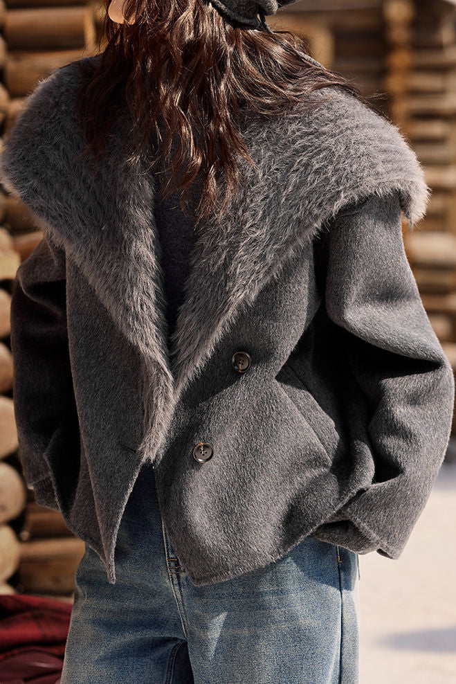 Casual Versatile Double-Layer Lapel Fleece-Lined Thick Coat