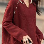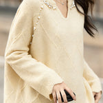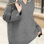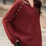 Casual Elegant V-Neck Pearl Pullover Knitted Top