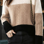 Casual Crew Neck Pullover Color-Block Loose Knitted Top