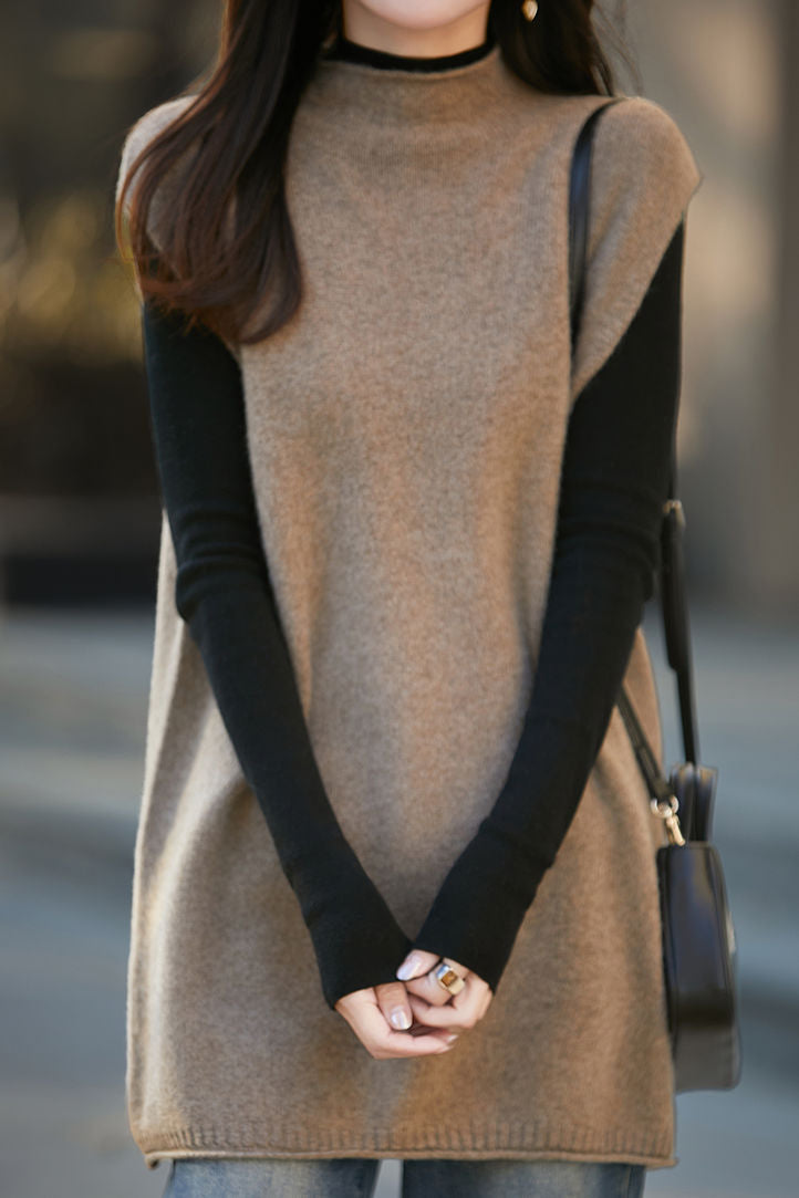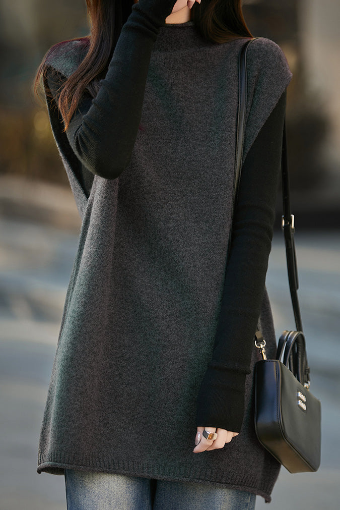 Casual Half-High Neck Loose Versatile Knitted Vest