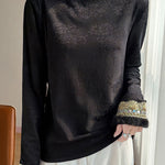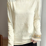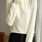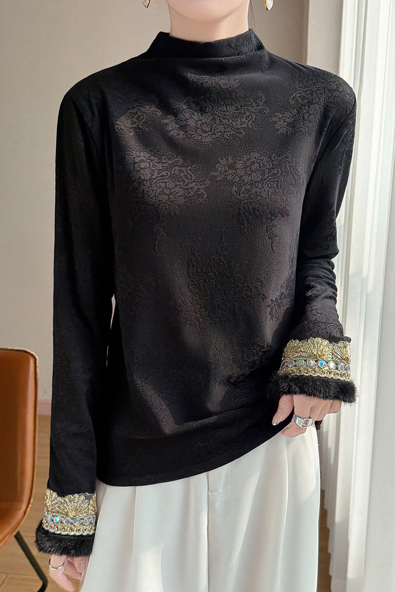 Casual Half-High Neck Jacquard Embroidered Knitted Top