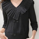 Casual Versatile Solid-Color Pleated Ruffle Knitted Top