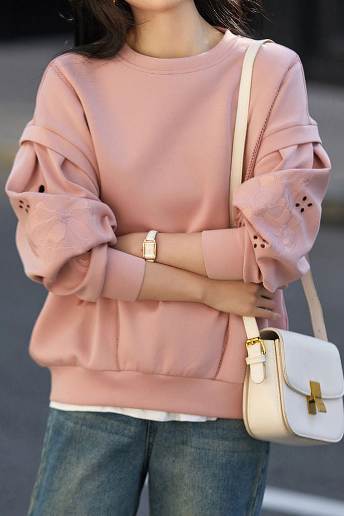 Casual Versatile Hollow-Out Design Crew Neck Hoodie