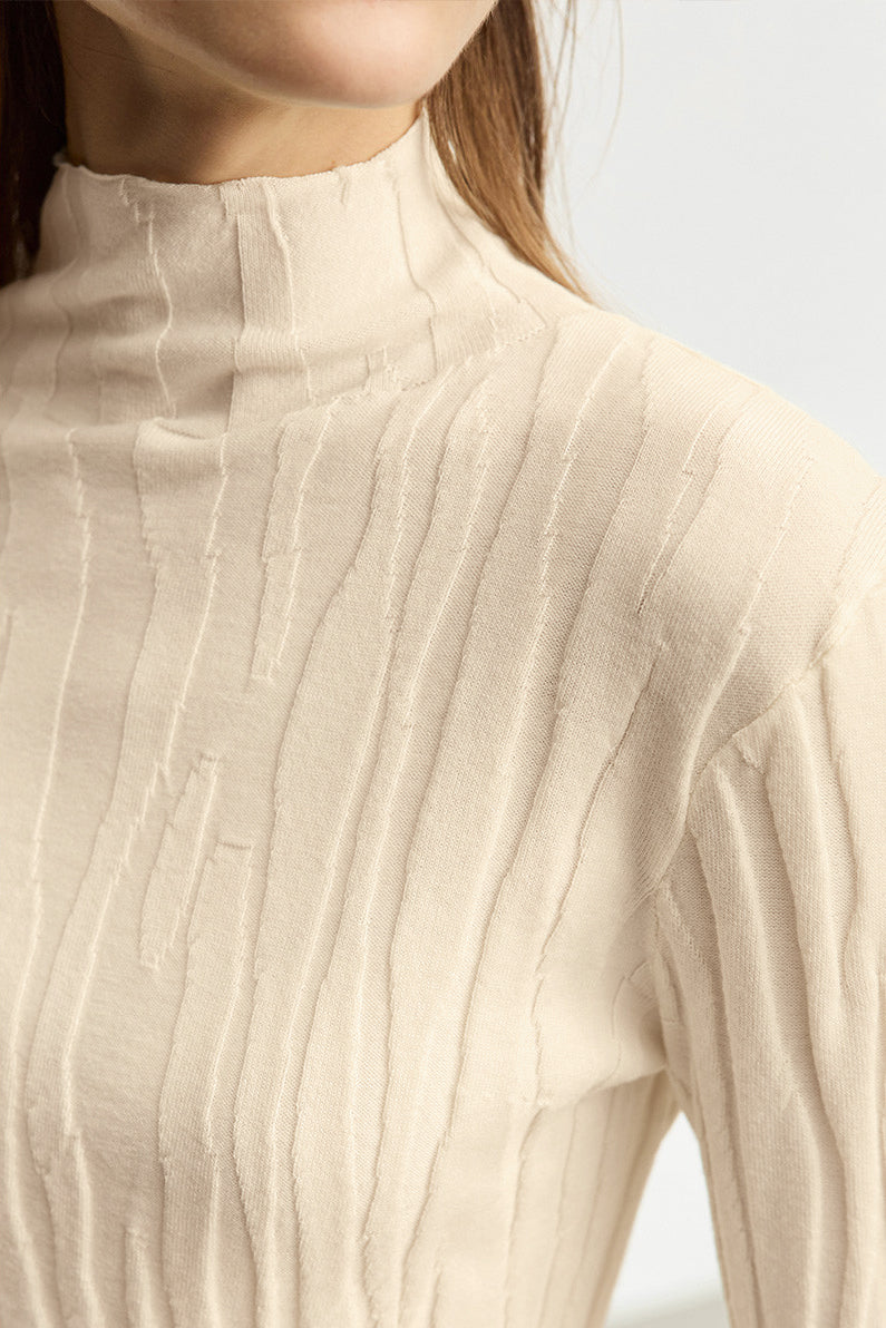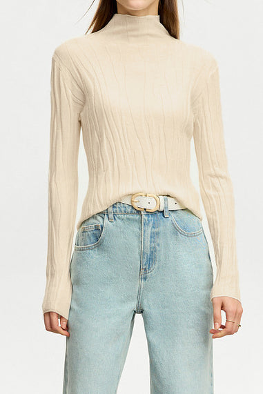 Casual Half-High Neck Asymmetric Textured Knitted Top