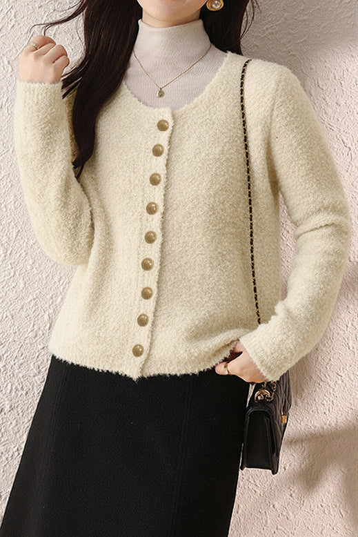Elegant Temperament Solid-Color Lurex V-Neck Knitted Coat