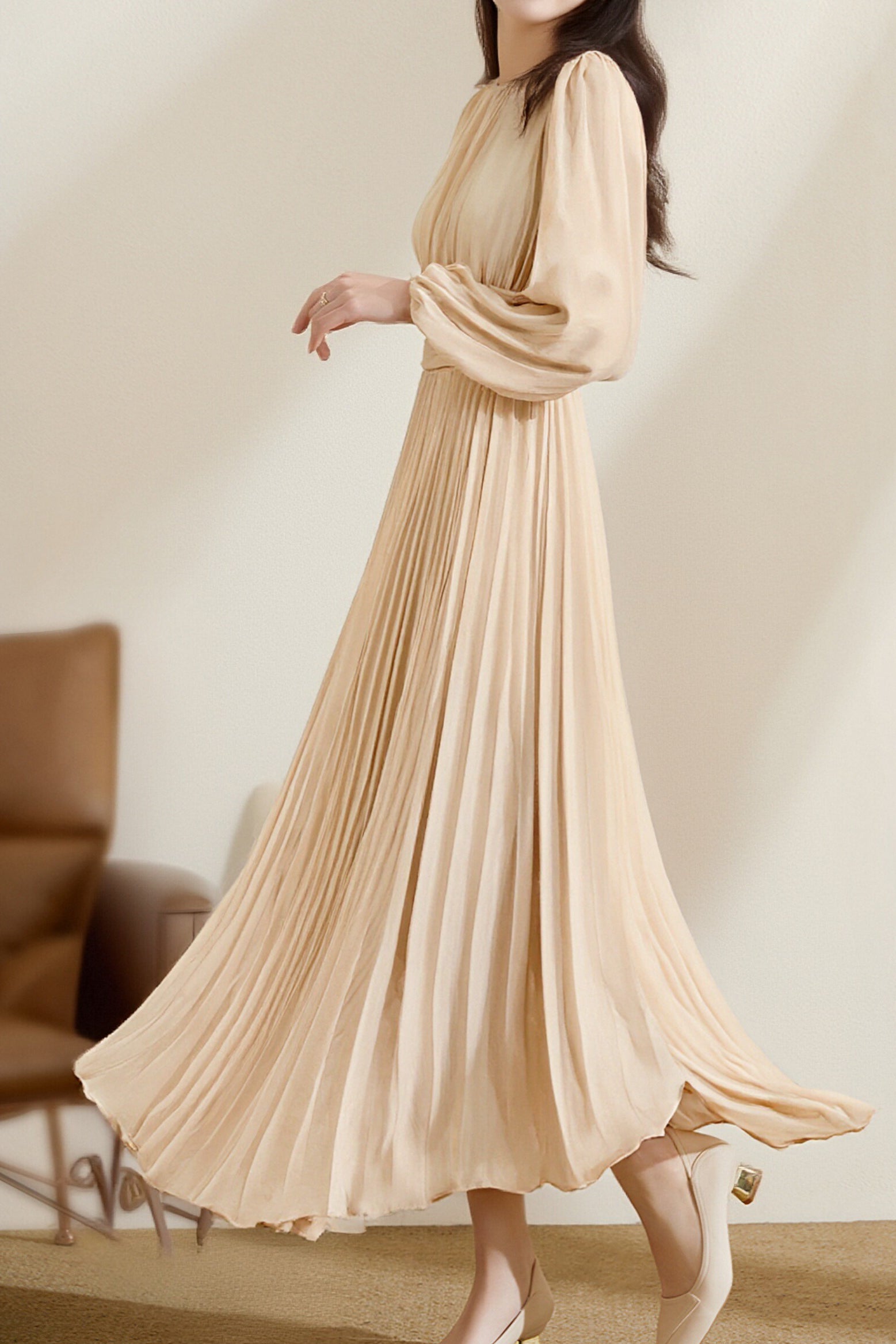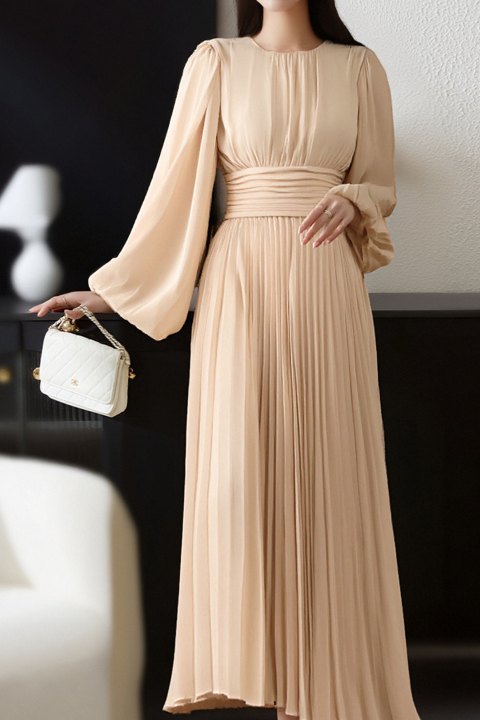 Elegant Temperament Ruched Waist Lantern Sleeve Dress