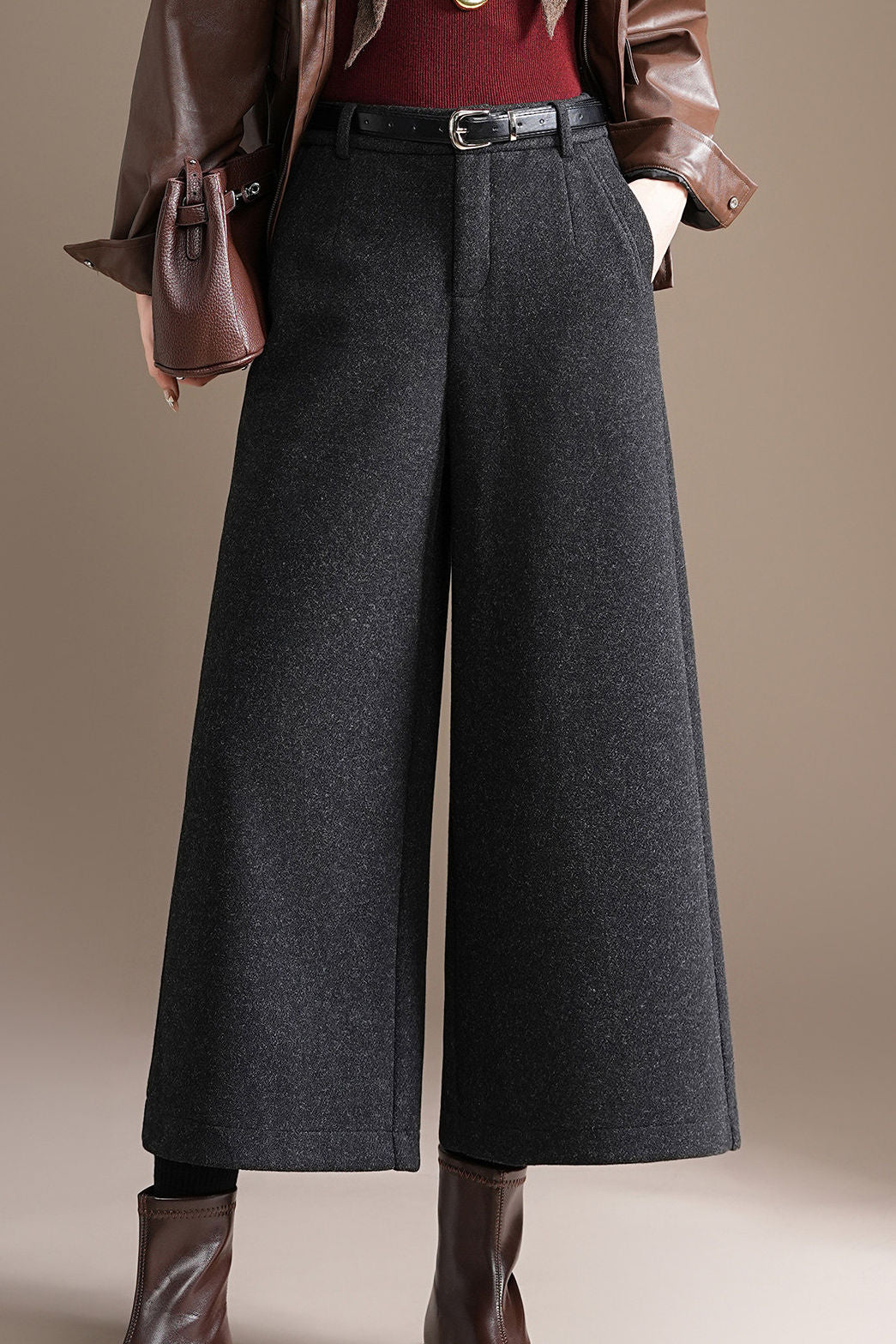 Office Versatile High-Waist Wool Blend Cropped Wide-Leg Pants - liwisi