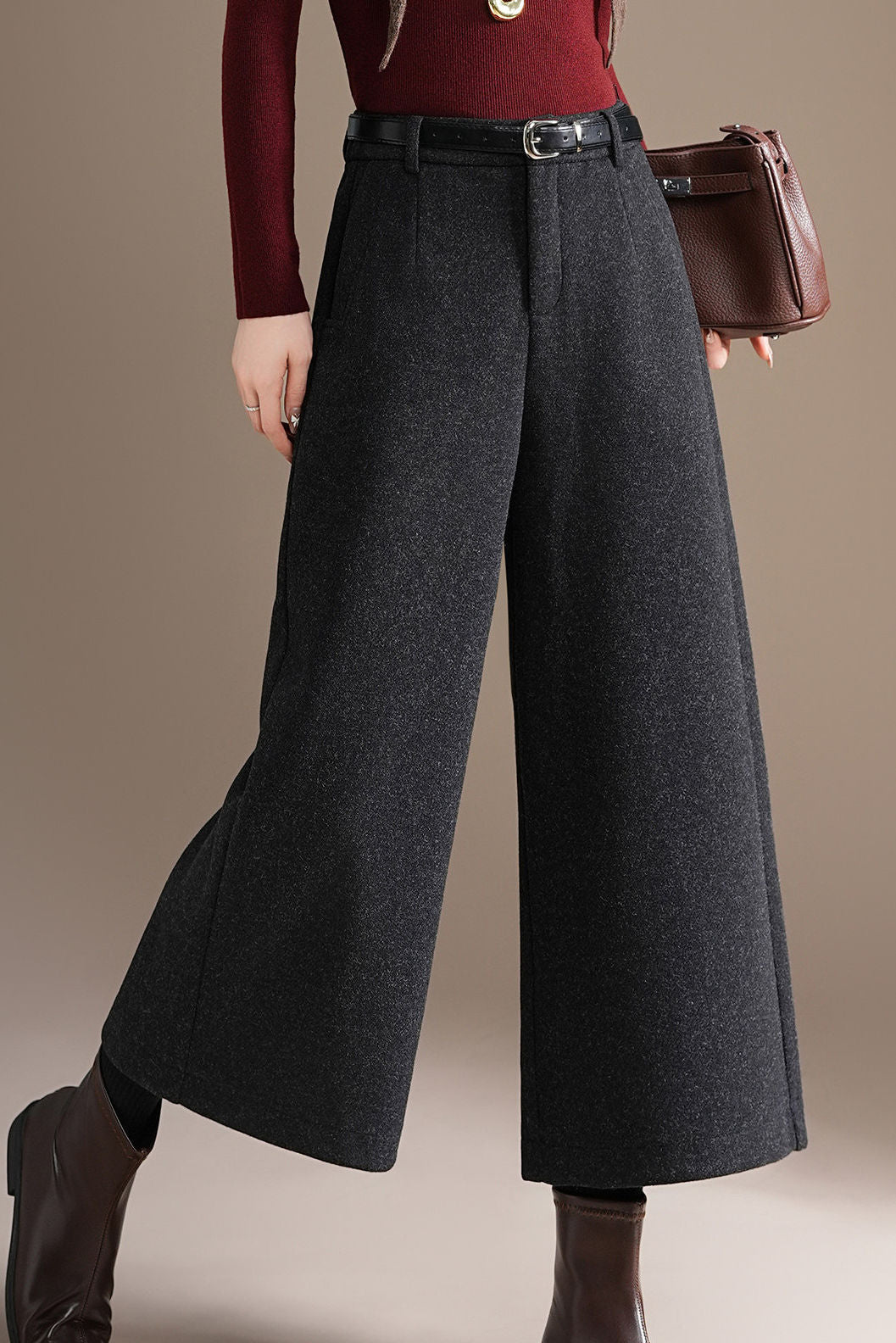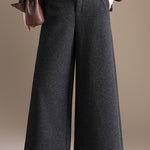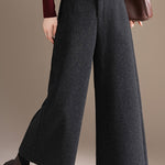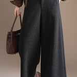 Casual Loose Wool Pleated Mid-Length Wide-Leg Pants