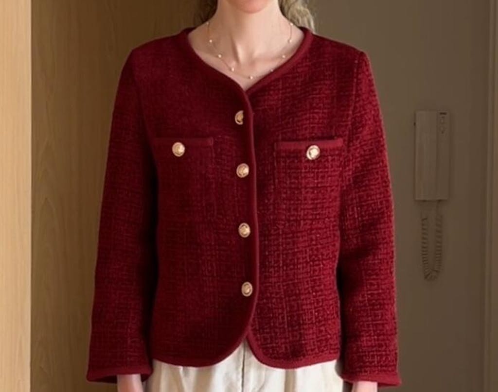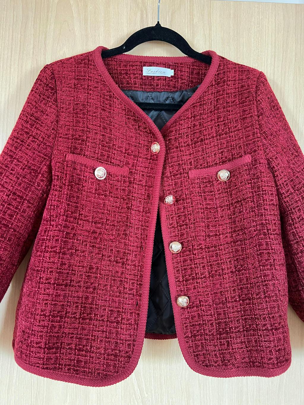Elegant-style round-neck jacket decorated with buttons and equipped with a lining