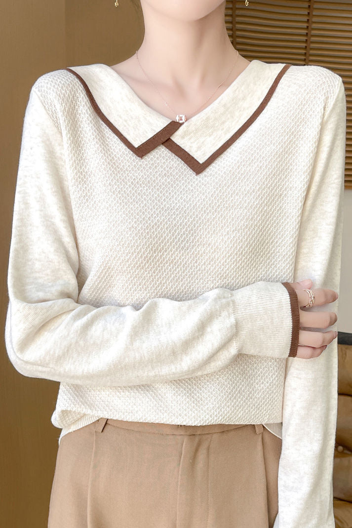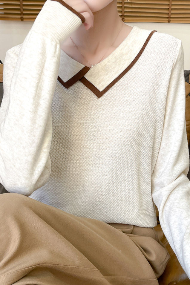 Casual Asymmetric Color-Block Lapel Knitted Top