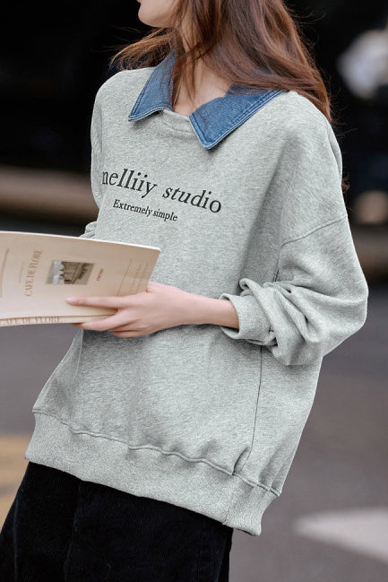 Casual Lapel Fake Two-Piece Letter Pullover Hoodie