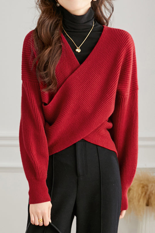 Casual Versatile V-Neck Solid-Color Knitted Top