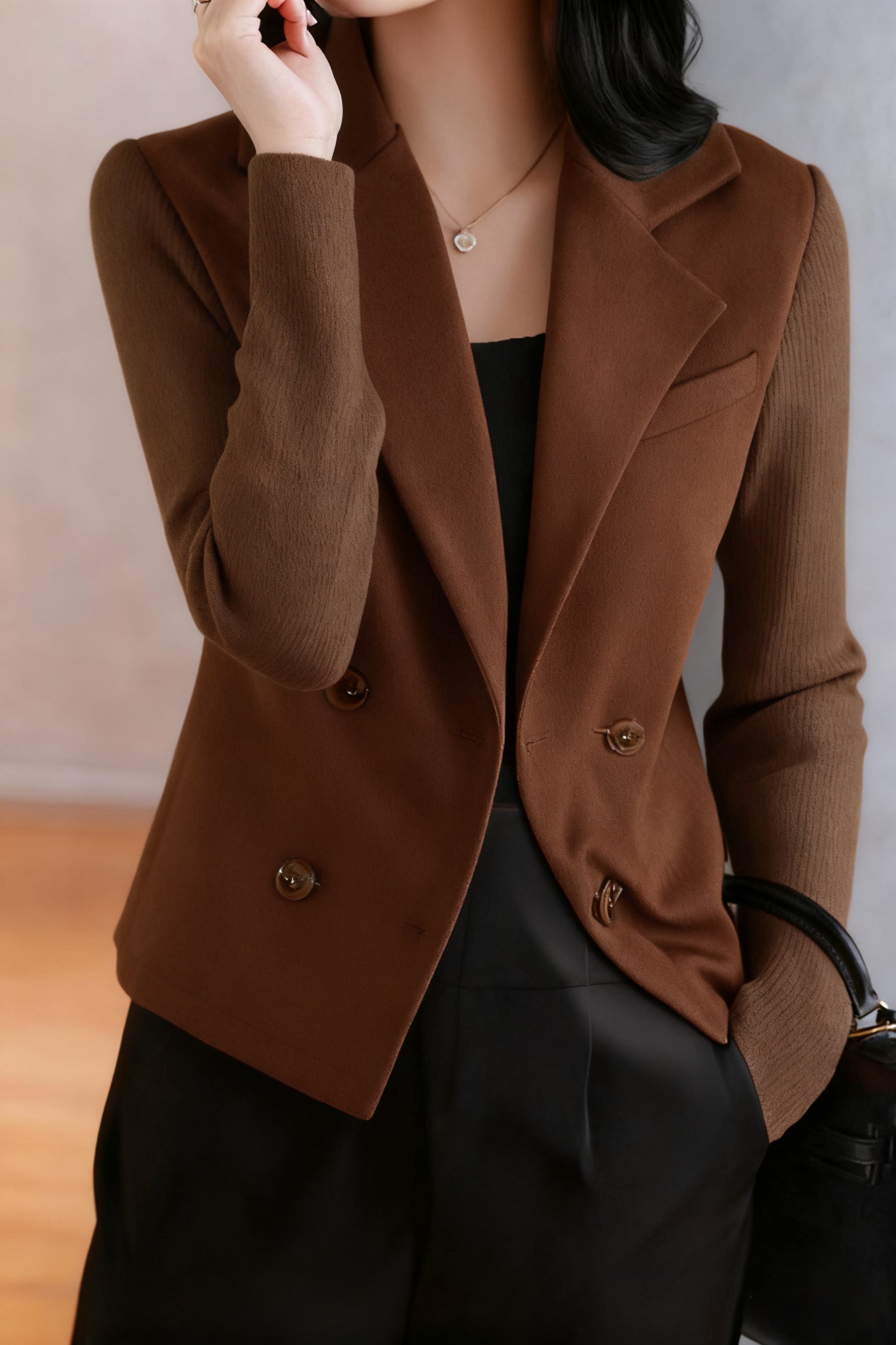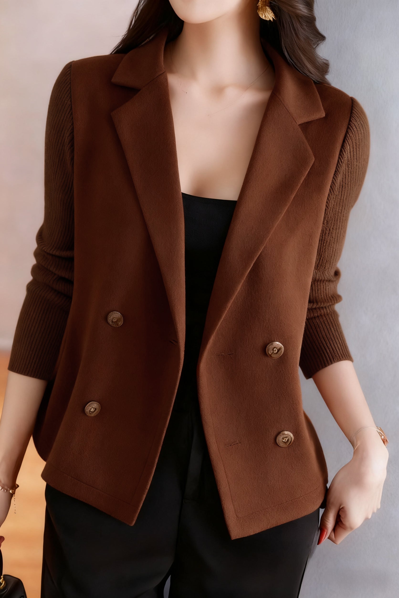Elegant Nail Color Tweed Jacket with Lining