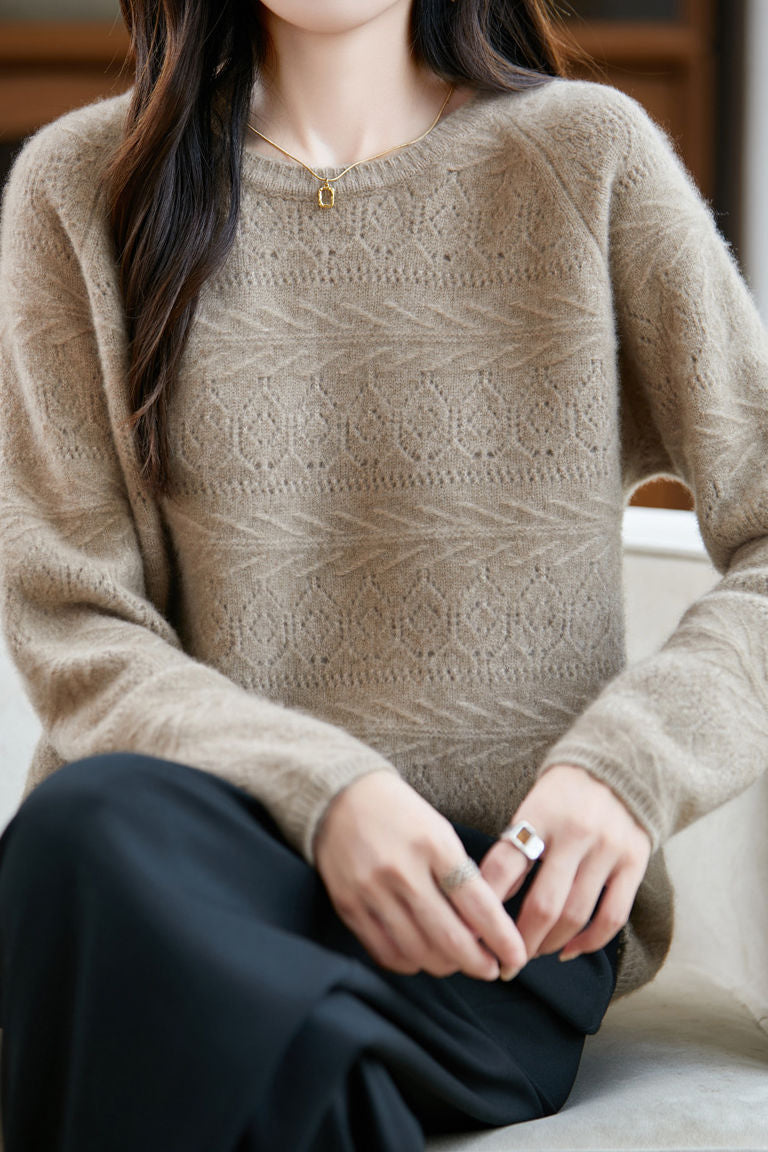 Casual Crew Neck Pullover Hollow-Out Raglan Long-Sleeve Sweater