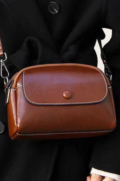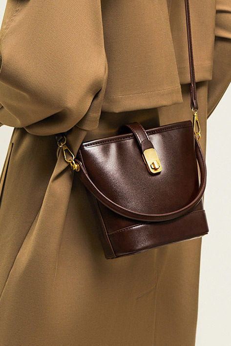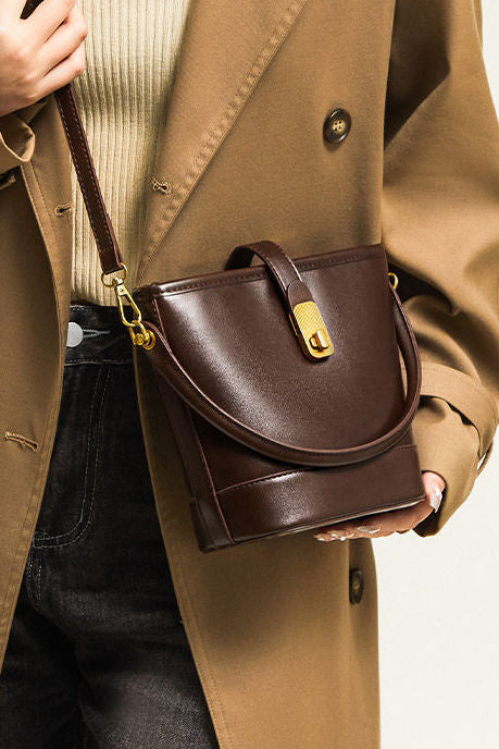 Commuter Retro Versatile Bucket Bag in Cowhide Leather