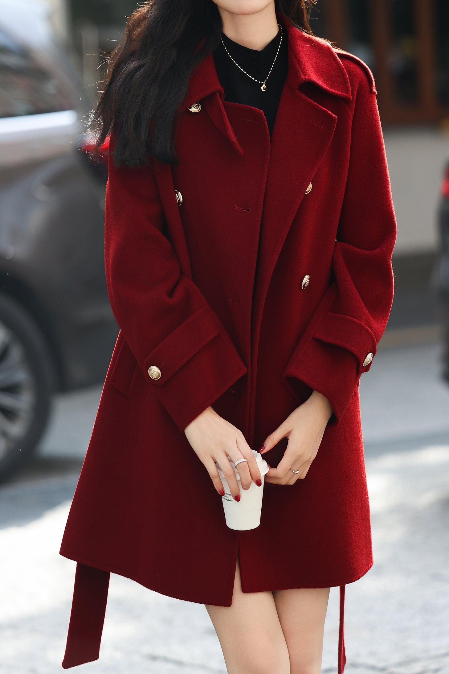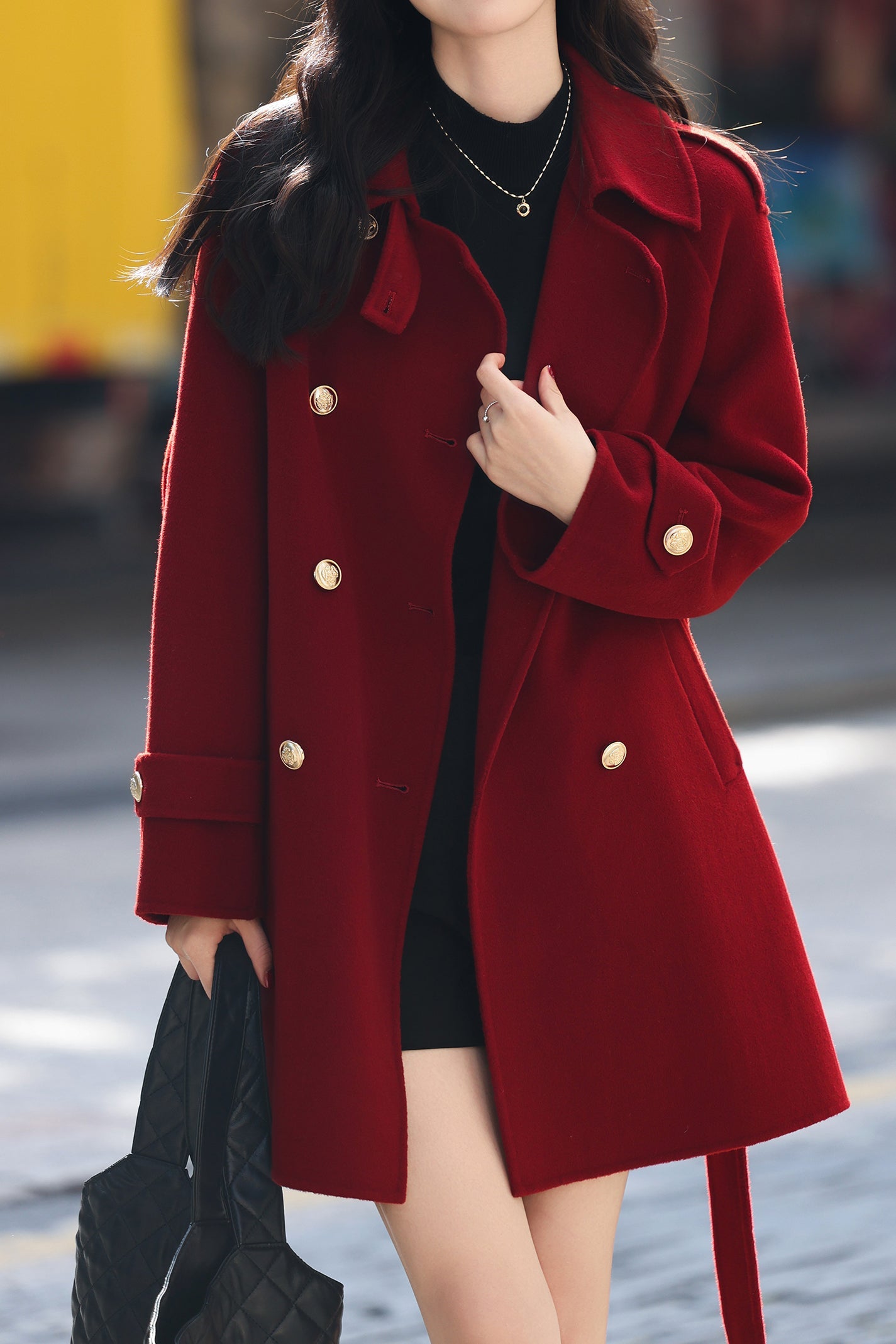 Elegant Temperament Retro Double-Breasted Woolen Coat