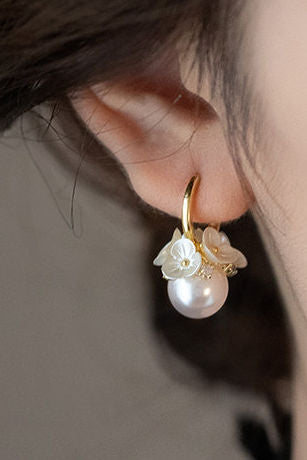 Elegant 3D Floral Stone-Embedded Pearl Earrings